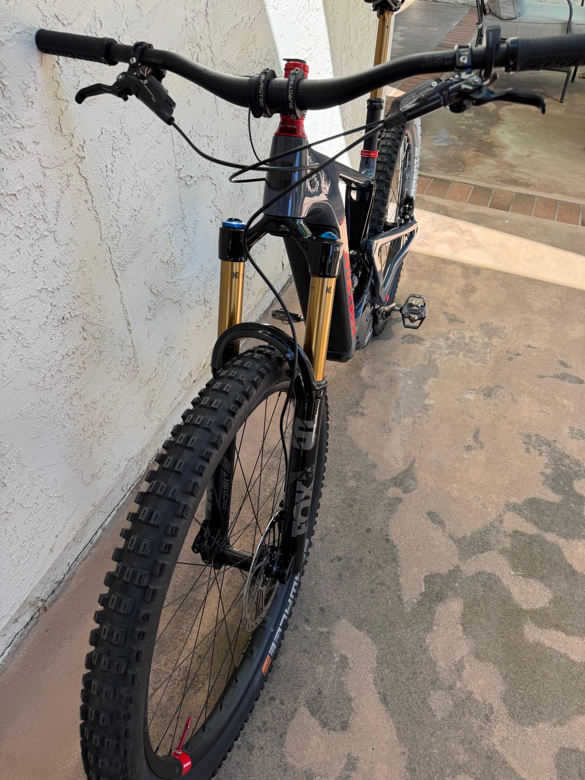 Current generation, Top-end Model Here are the main components: Wheels - Reserve 30 HD 29" Carbon [Front], Reserve 31 DH 27.5" Carbon [Rear] with i9 1/1 hubs Tires - Schwalbe Eddie Current, with Cush Core inserts Frame - CC Carbon, size medium Fork - Fox 36 Float Factory, 160 mm with Kashima coat Shock - RockShox Super Deluxe Ultimate Drivetrain - SRAM X01 Eagle AXS, 12spd with upgraded rocker paddle Brakes - SRAM Code RSC Seat Post - Fox Transfer with Kashima coat Motor - Shimano EP800 Battery - Darfon 720 Watt-hour Integrated Headset - Wolftooth Premium
