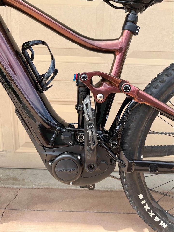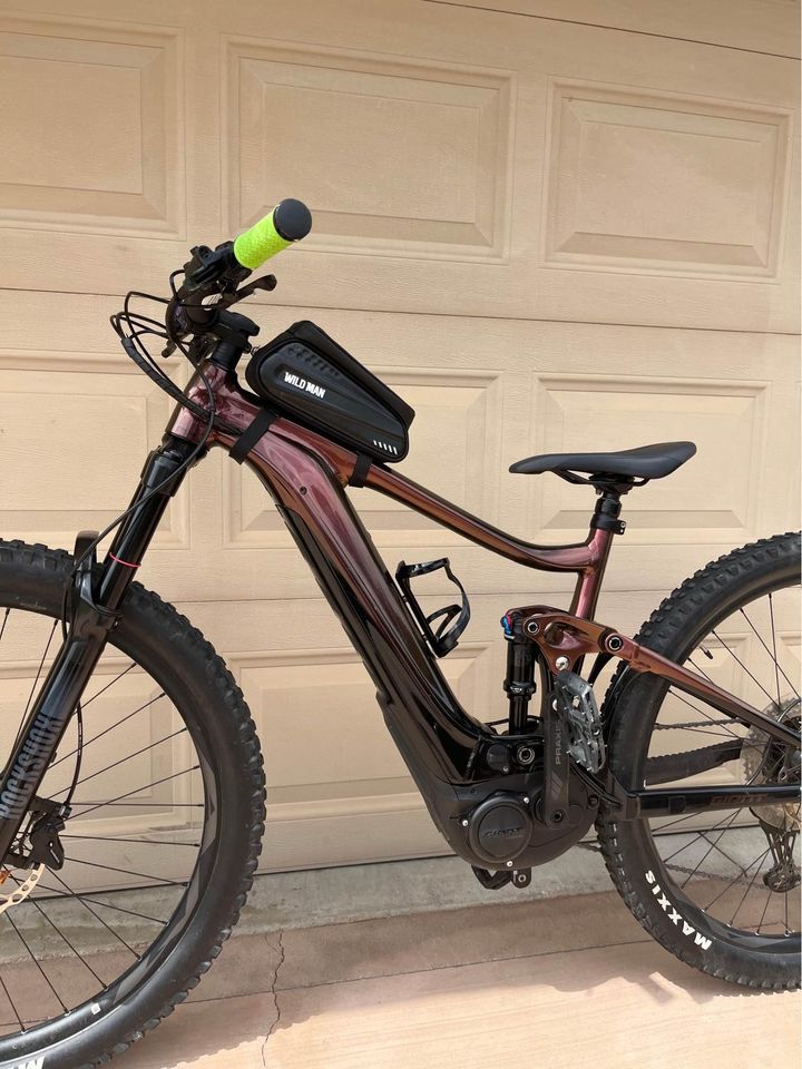 Giant Mountain e-bike 29er Size: Medium Electric bike Battery has only 28 charge cycles, very healthy The bike is clean. I’ve decided to stick with road bikes. Comes with factory charger. Able to remove the batter and charge outside the bike if needed. Also comes with 2 extra sets of tires for different terrains. ?Nothing wrong with the bike. 2021 Giant Trance X E+ 29 Pro 3 Specifications * Frame | ALUXX SL Grade Aluminum Alloy, Maestro Suspension Design, 140mm Travel * Motor | Giant SyncDrive Pro, 80nM * Battery | Giant EnergyPak Smart 625Wh, 36V Lithium-Ion * Fork | RockShox 35 Gold RL, 150mm Travel * Shock | Fox Float DPS, Performance Series * Wheels | Shimano MT-410 Hubs & Giant AM Rims, 30mm Inner Rim Width * Drivetrain | Shimano Deore 1×12 w/Praxis e-Cadet+ 36T Crankset & Deore 10-51T Cassette * Brakes | Shimano M420 4-Piston, 203mm Rotors * Handlebar | Giant Contact Trail Alloy, 35mm Diameter, 780mm Width * Stem | Giant Contact SL, 35mm Diameter, 40mm Length * Seatpost | Giant Contact Switch Dropper, Travel: 150mm (M) * Saddle | Giant Romero